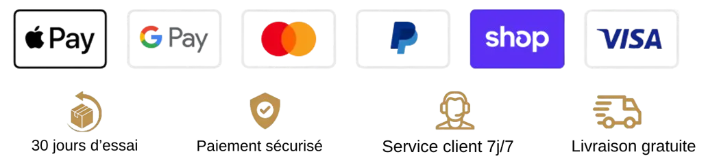 Nous sommes convaincus de la qualité de nos produits. C'est pourquoi nous vous offrons une garantie de retour de 30 jours. Si pour une raison quelconque vous n'êtes pas entièrement satisfait(e) de votre achat, contactez notre service client et nous vous rembourserons intégralement — sans tracas, sans conditions.